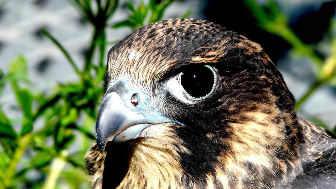 Wenn tagaktive Vögel, so dominierende Augen haben wie dieser junge Wanderfalke, kann man ermessen, welche Bedeutung sie für seine Lebensweise haben. Wissenschaftler haben festgestellt, dass Falken achtmal besser sehen können als wir Menschen.